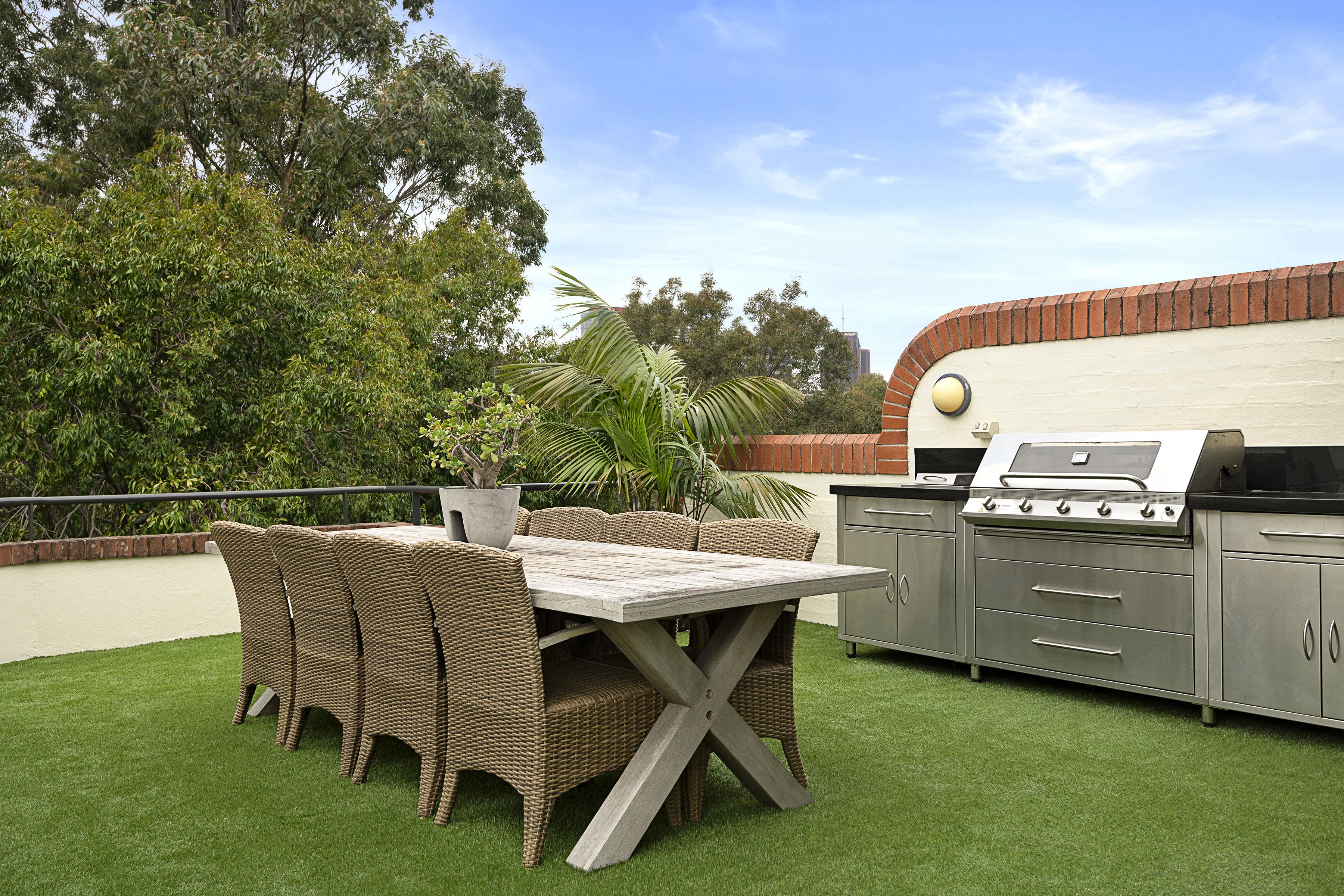- Full level rooftop terrace with wet bar and built-in BBQ