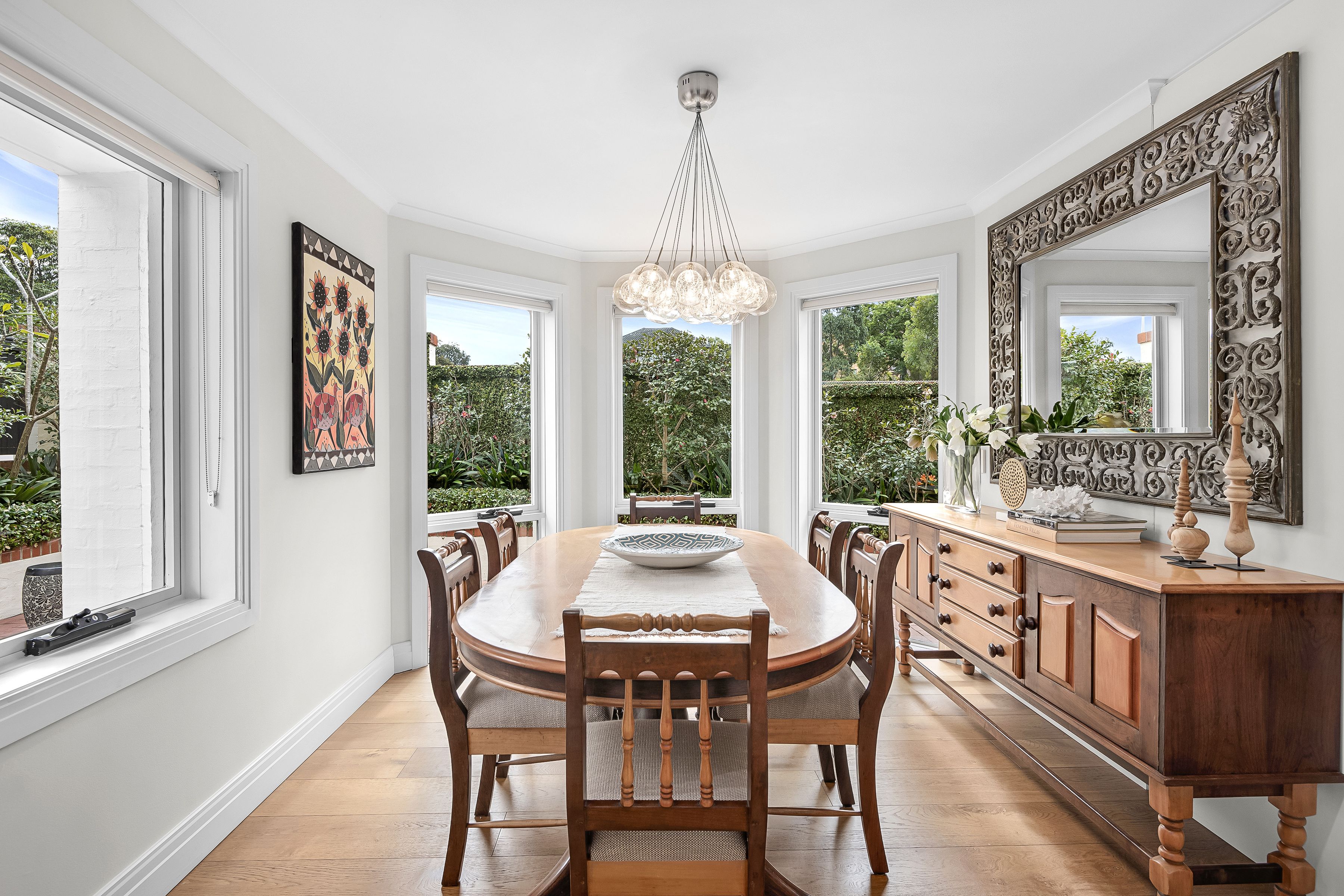 - Elegant formal dining room to contemporary gas kitchen