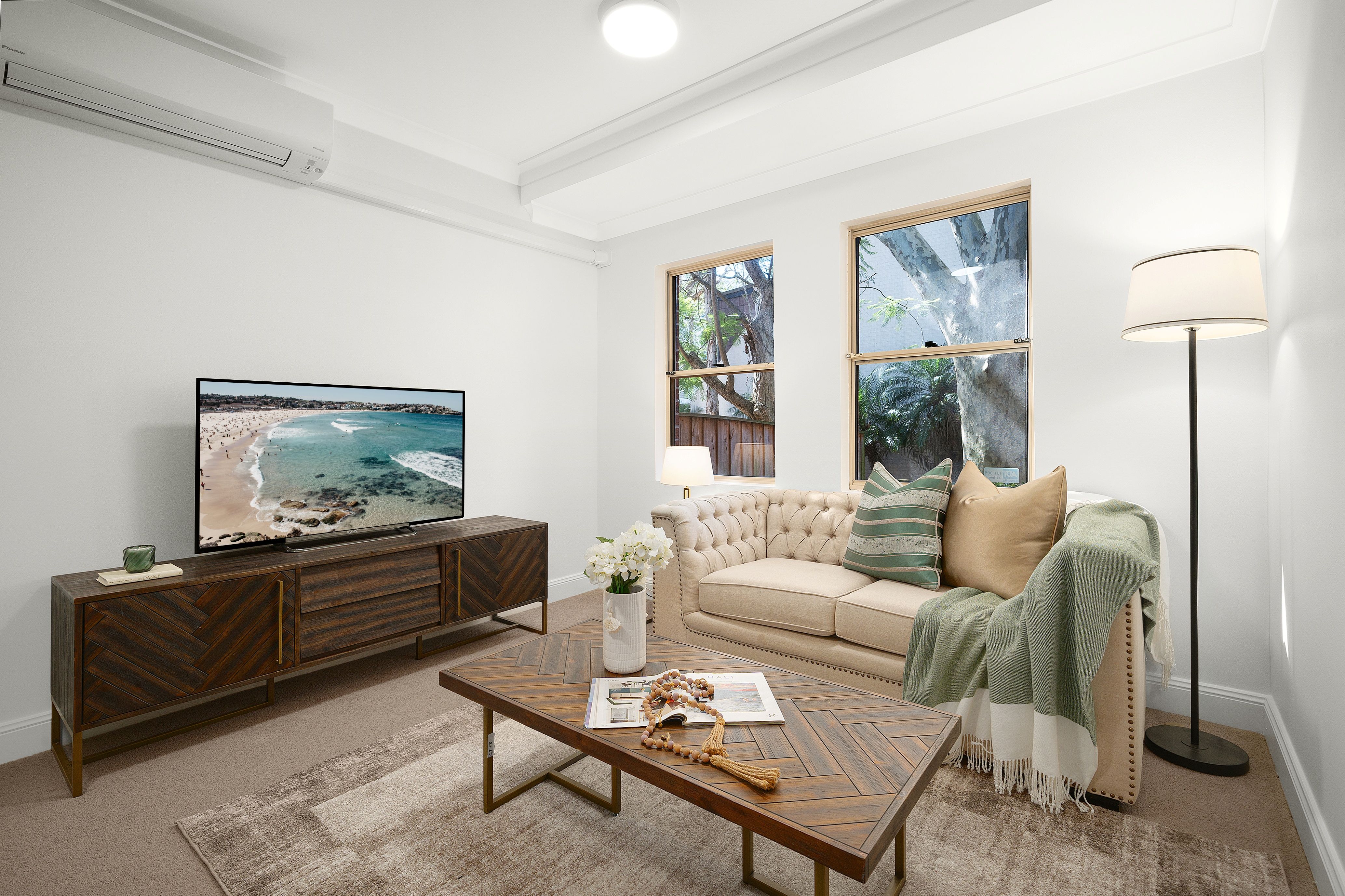 - Roomy living/dining space with air conditioning unit