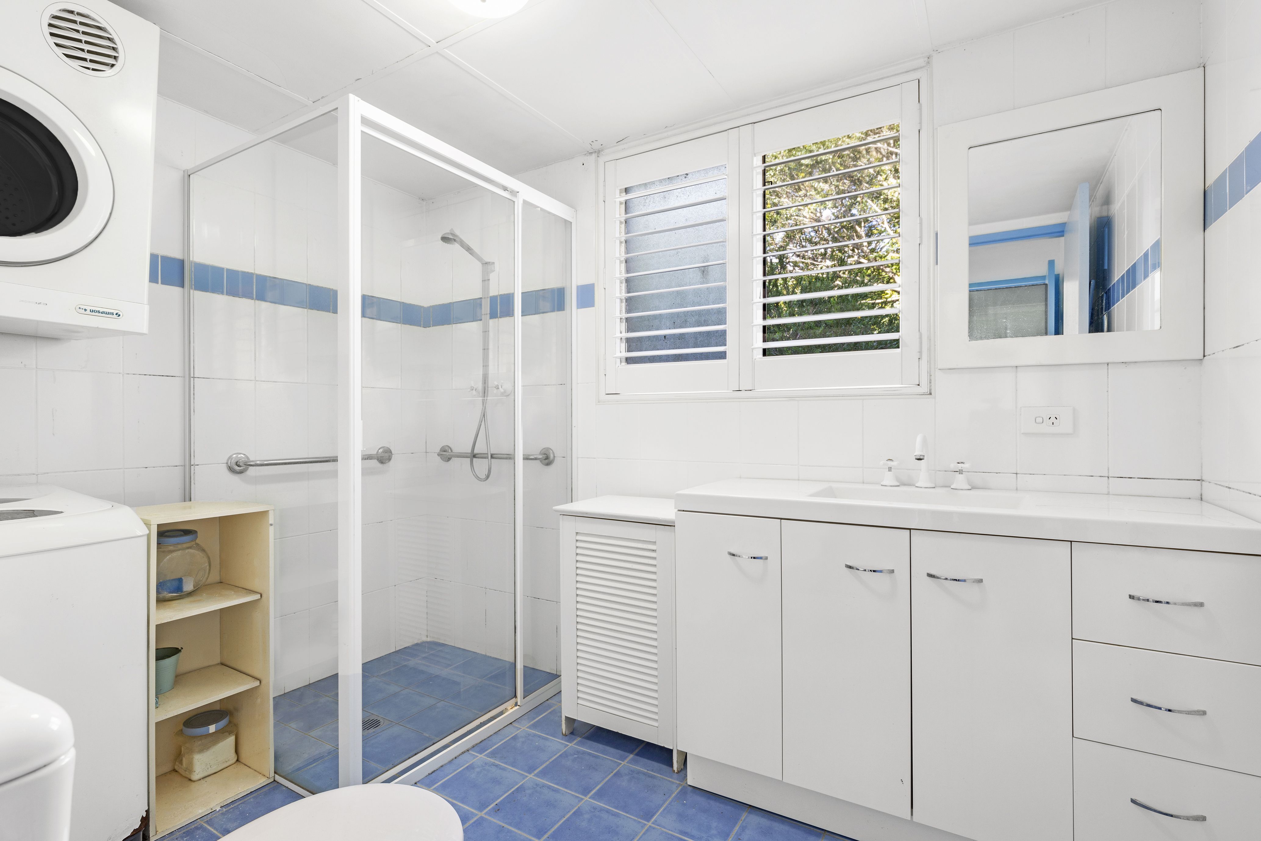 - Well presented bathroom/laundry combo tiled floor-to-ceiling