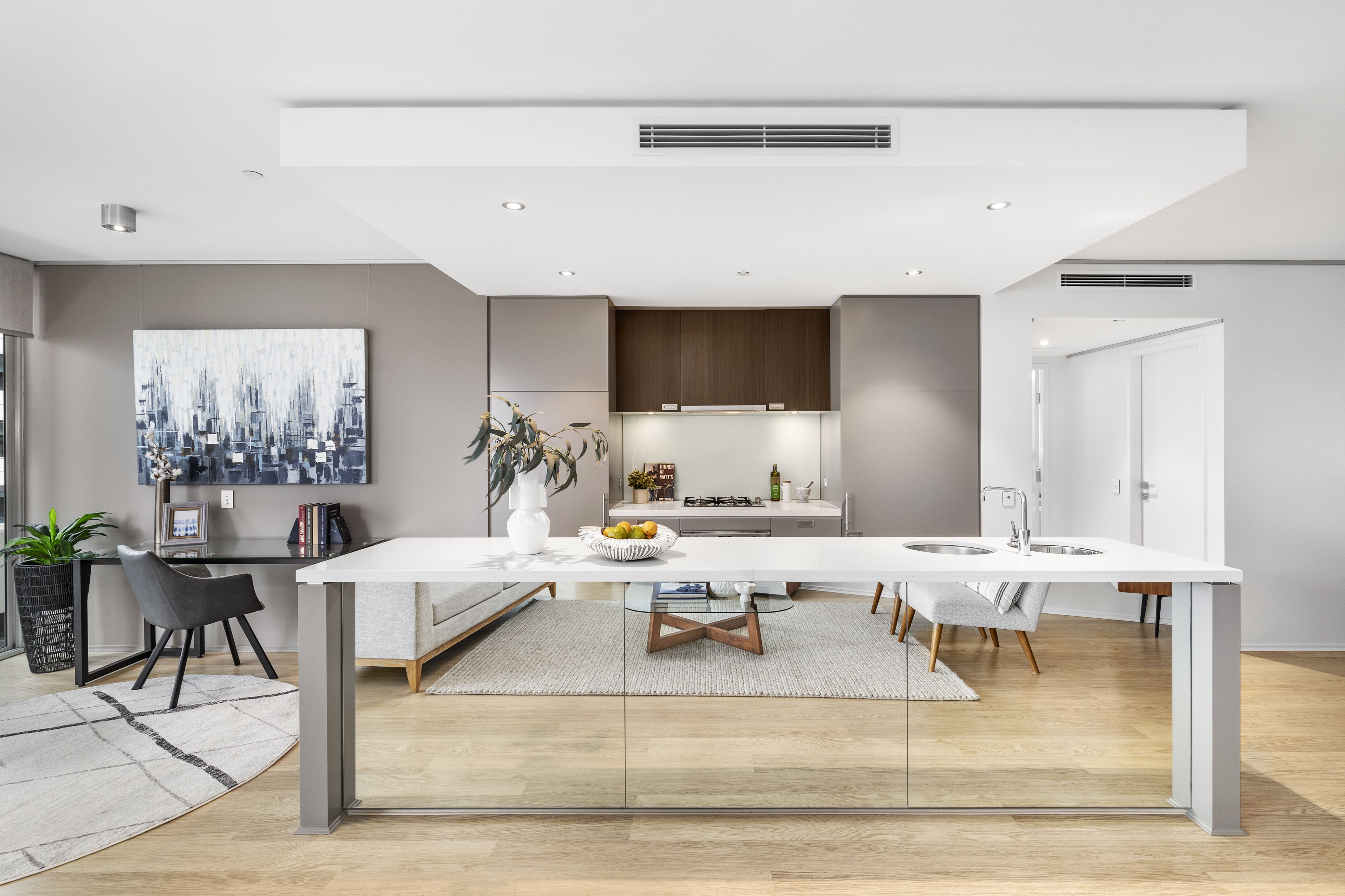 - Expansive open plan interiors include multiple lounge/dining spaces over 122sqm of liveable space.