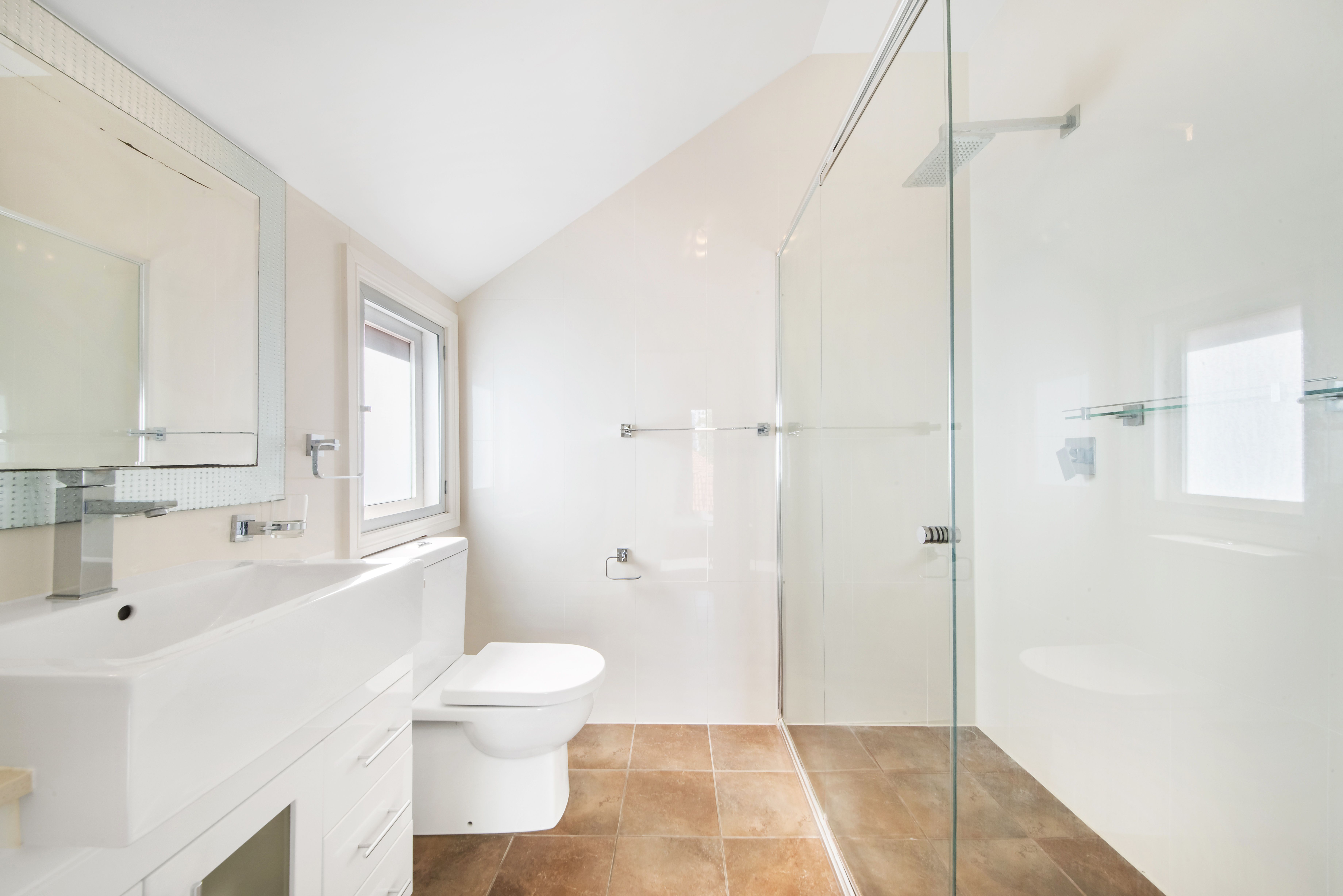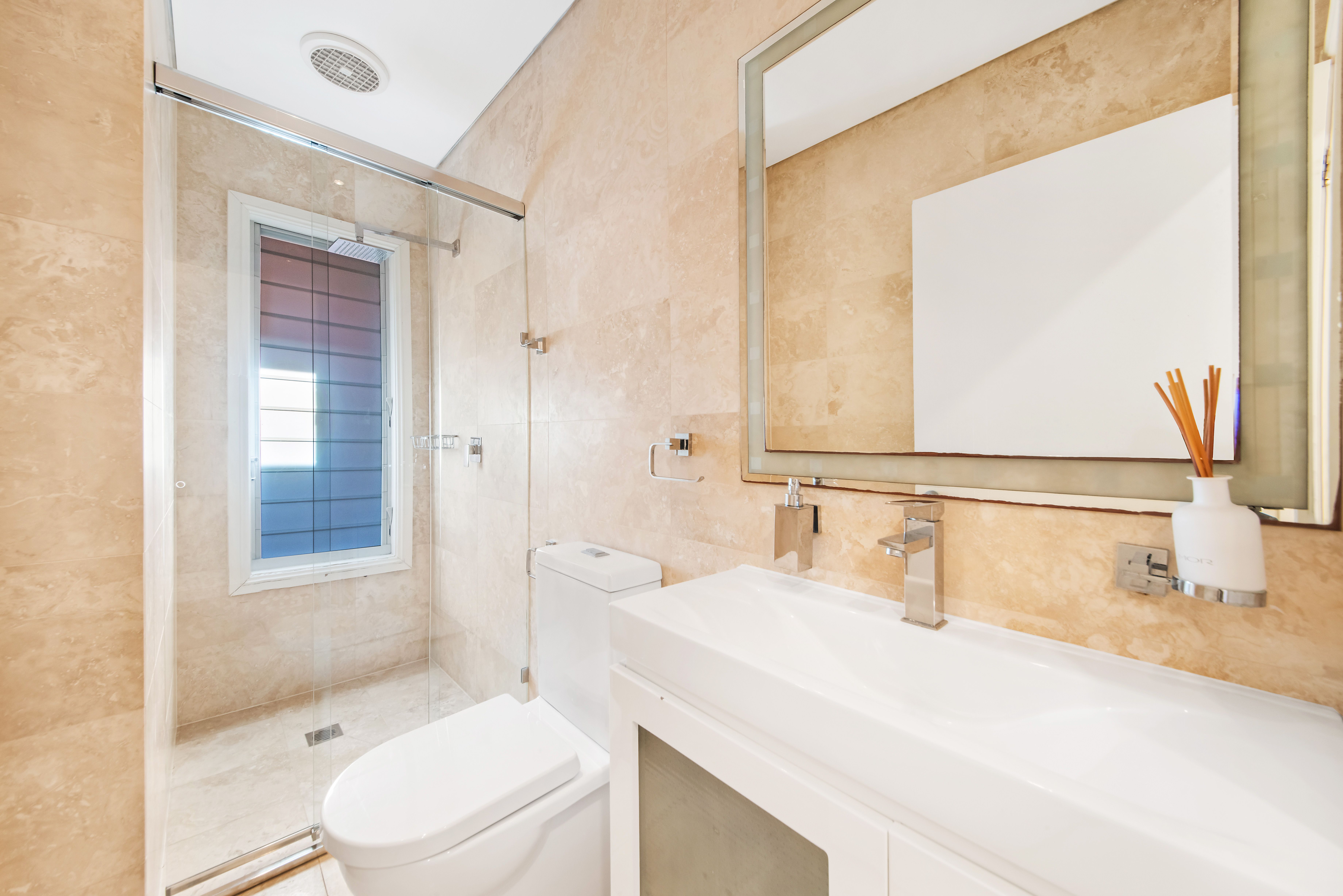 - Stylish travertine bathrooms and separate internal laundry