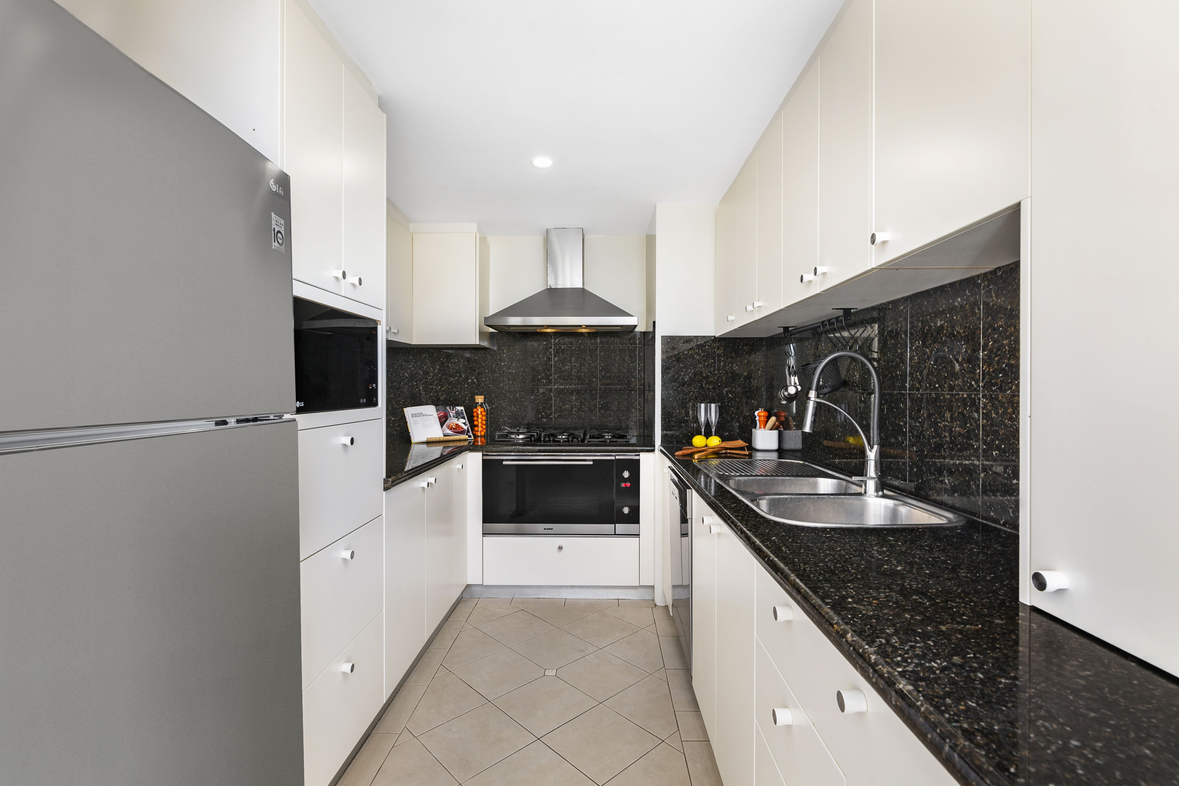 - Eat-in kitchen, stone bench tops, Miele appliances