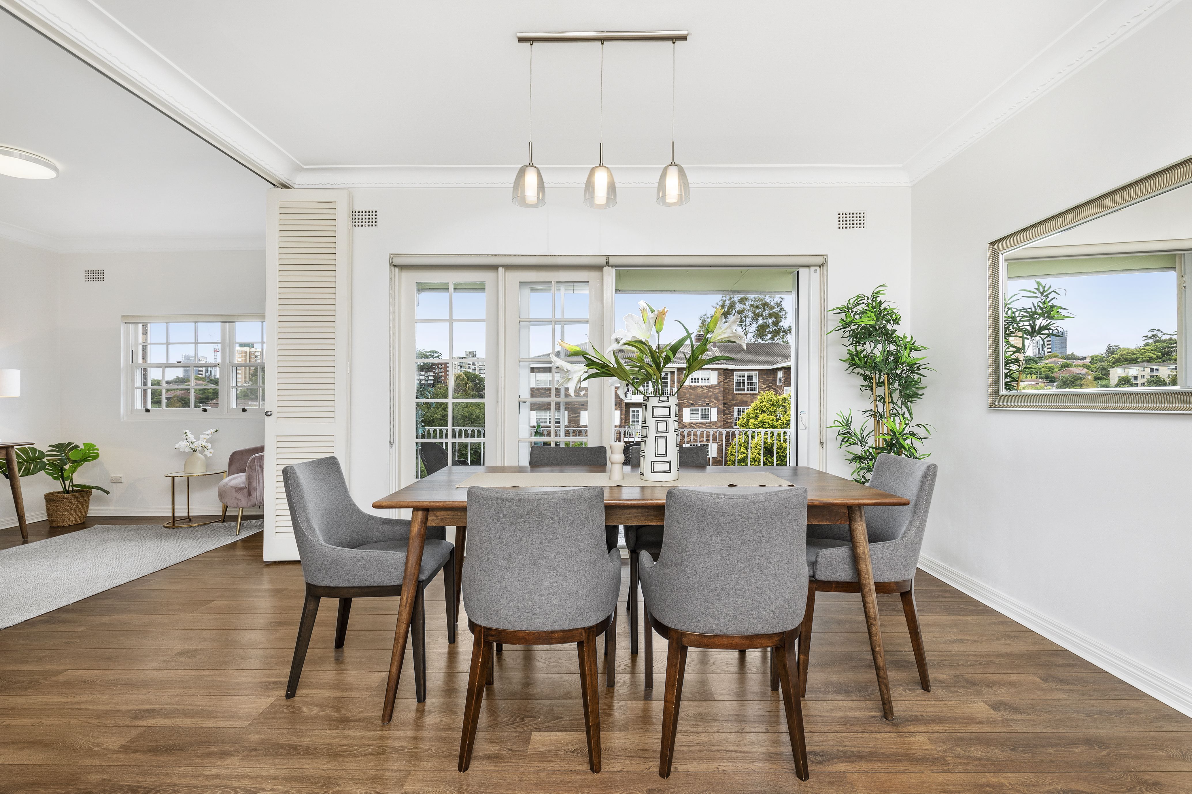 - Generous living/dining room with engineered timber floors