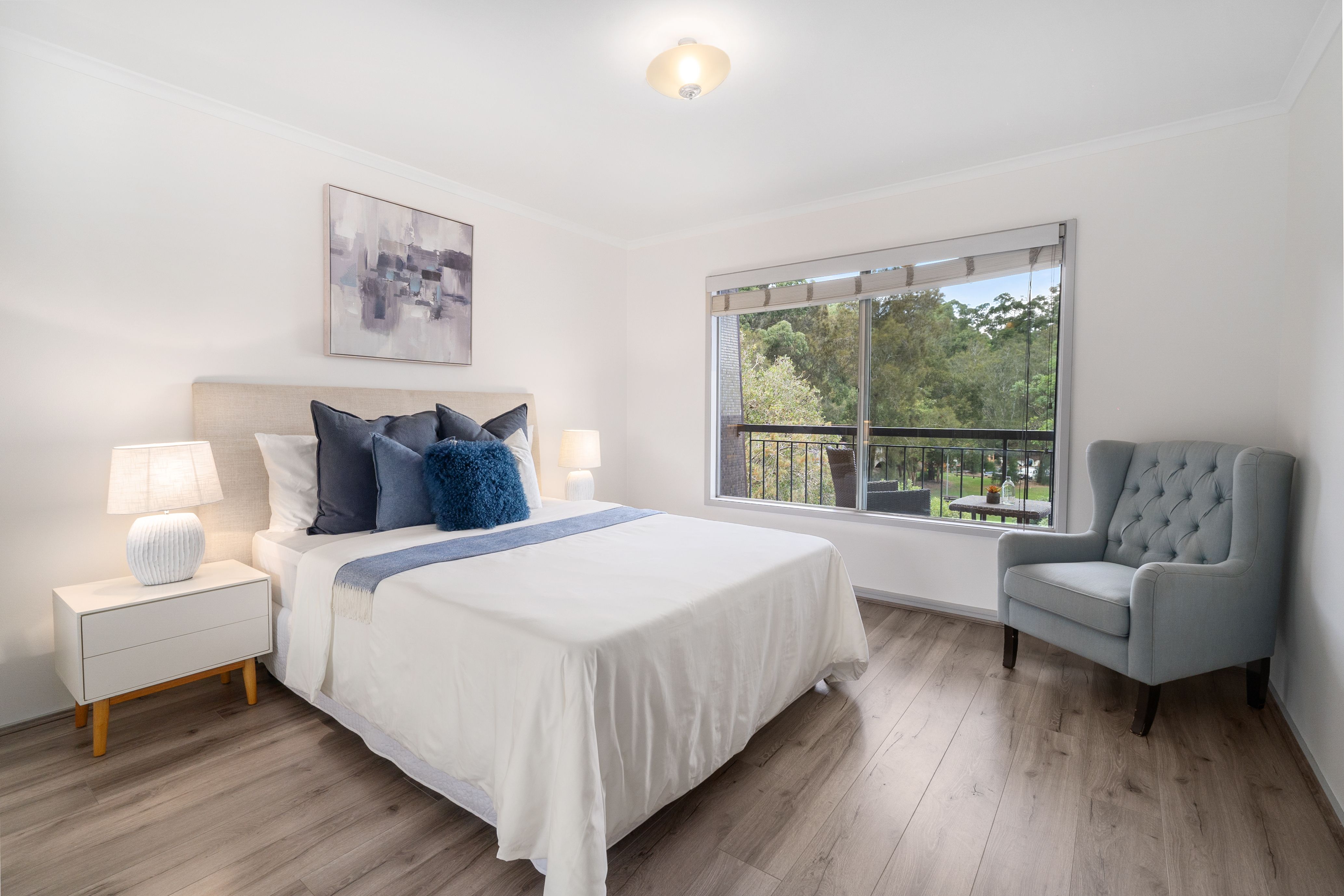 Enjoying an elevated position with 180-degree views over Burns Bay Reserve and the Lane Cove River, this apartment is where space, style and waterfront living converge. It boasts a generous 97.7sqm floor plan with an indoor/outdoor flow and nice separation between the living spaces and bedrooms for supreme functionality. The versatile dining alcove could also be used as a home office, fitness studio, kids’ playroom or potential third bedroom. Timber-style floors are set against crisp white walls while the kitchen and bathroom have been fully renovated. A true lifestyle address, step out to gorgeous picnic spots, an off-leash dog park and kayaking. Stroll up to the onsite playground, outdoor gym and convenience store/café. Quiet yet convenient, it’s handy to buses, Lane Cove village and the new Canopy precinct.