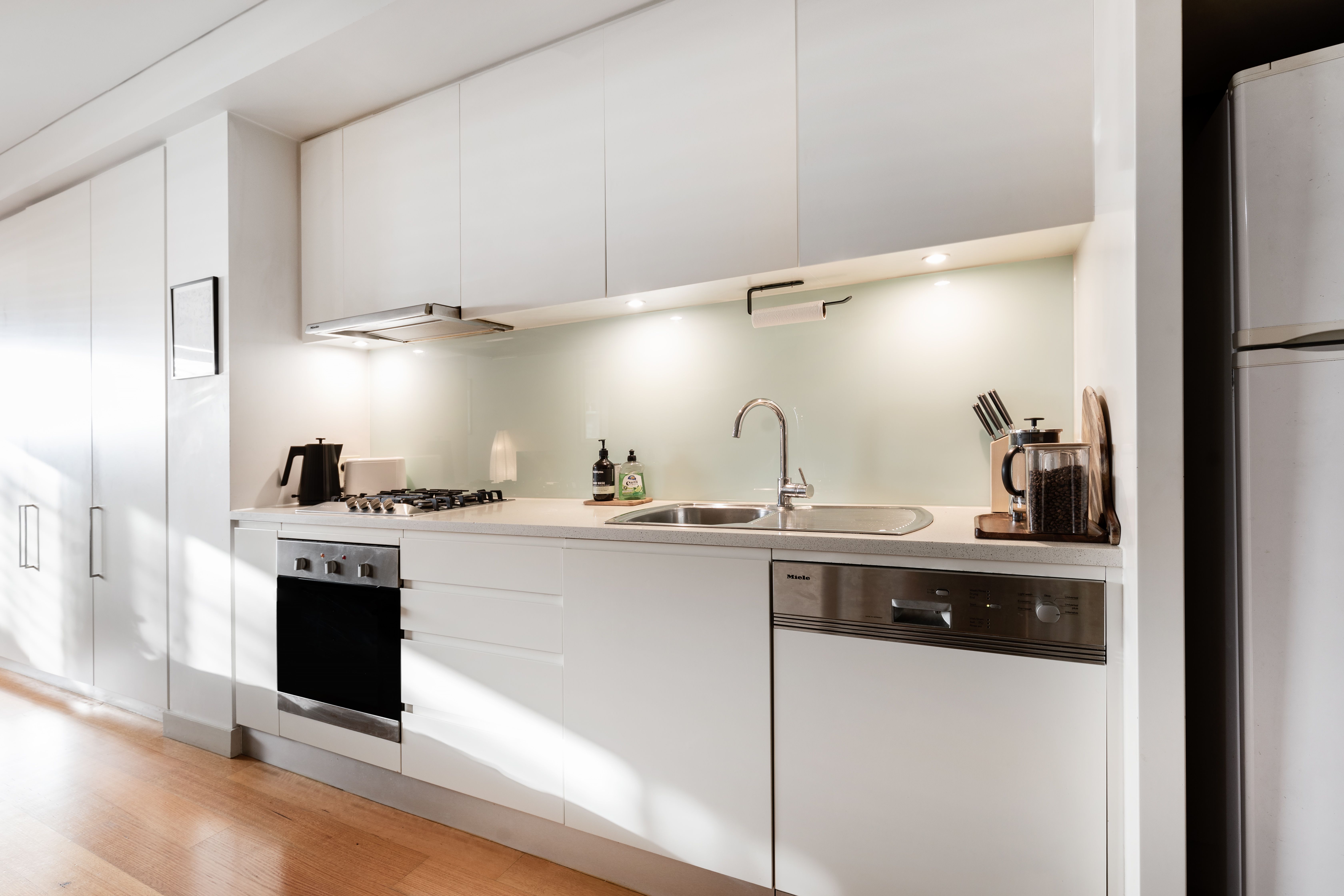 - Designer integrated kitchen with gas cooking & dishwasher