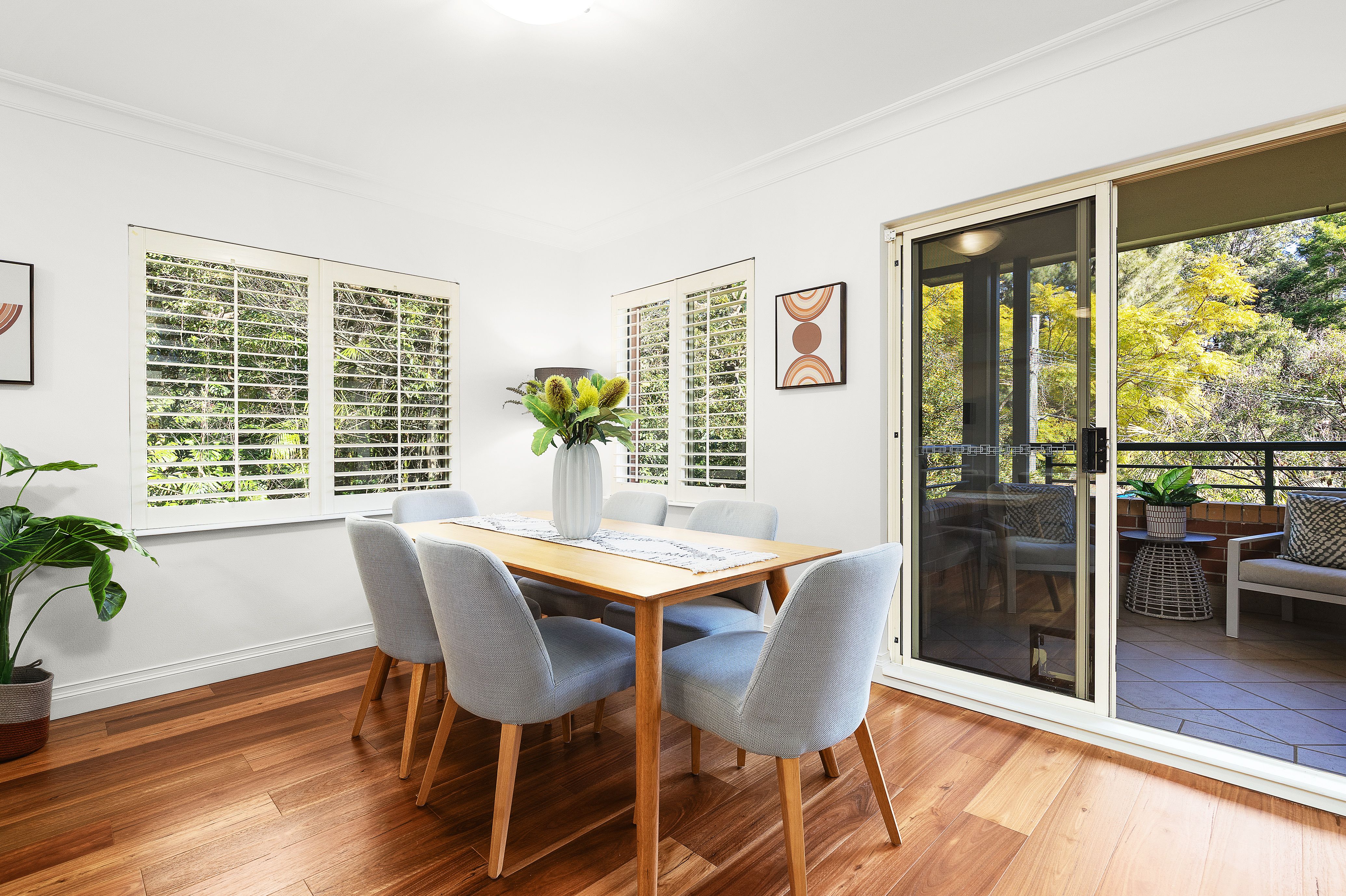 The versatile layout features a spacious open plan living and dining area, flowing to a covered terrace set against leafy surrounds, ideal for relaxing or entertaining. A stone-finished gas kitchen provides excellent storage and workspace, while hardwood flooring adds warmth and practicality.