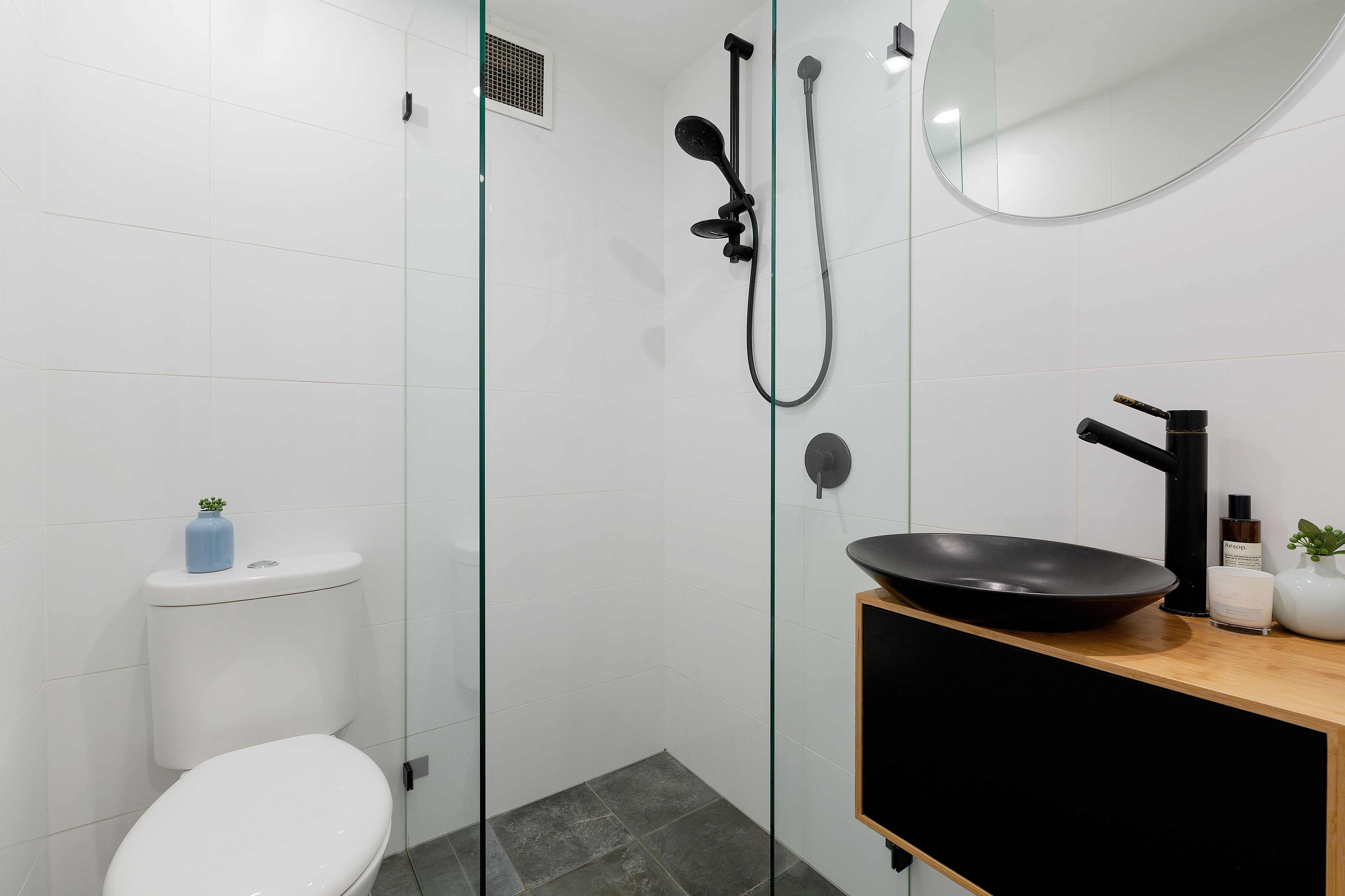 - Ultra-modern bathroom with sleek tiling and contemporary finishes