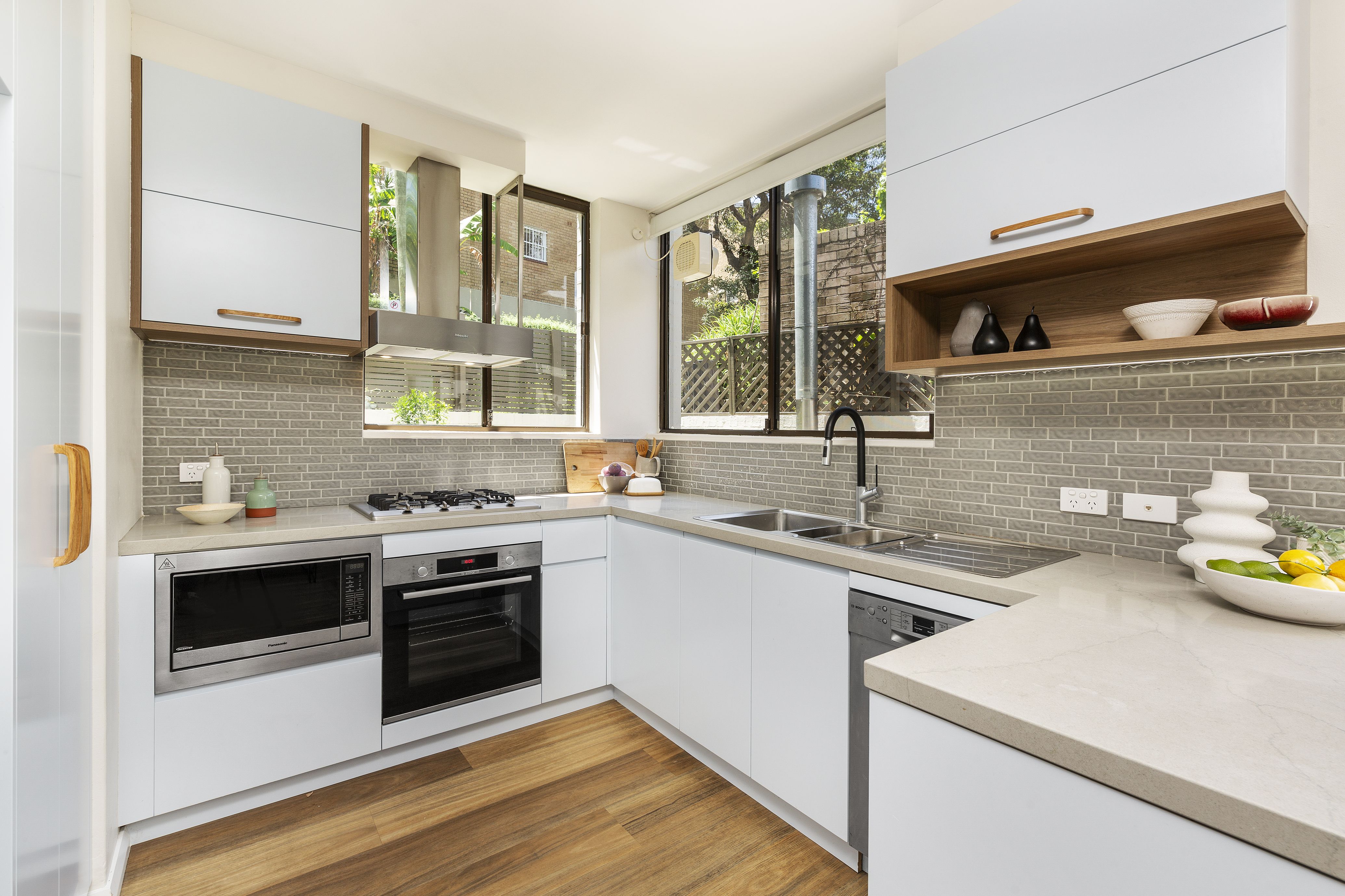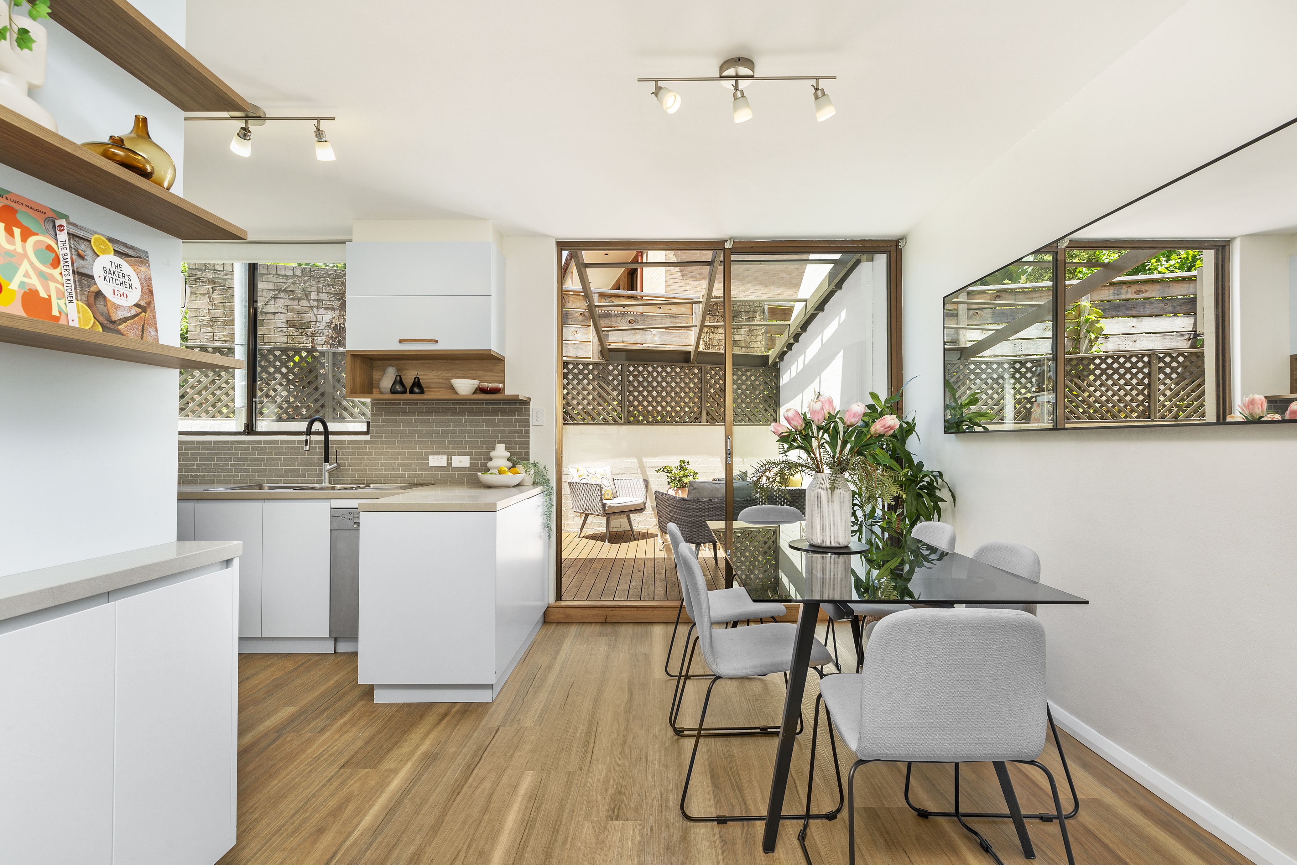 Placed at the end of a row of six townhouses within footsteps to gorgeous Brennan Park, this residence is a light-filled haven of sleek contemporary living and seamless indoor/outdoor entertaining. The ground level boasts front and rear outdoor access and a wraparound terrace for summer barbeques that stretch well into the evening. An impeccably appointed open plan kitchen completes the picture. Upstairs, the parents' retreat is set to impress with a huge private terrace and a loft living space or home office. Boasting double garaging with internal access, it's set in a premier tree-lined street central to cosmopolitan Waverton and Crows Nest attractions, including foreshore reserves, rail transport, eateries and nightlife.