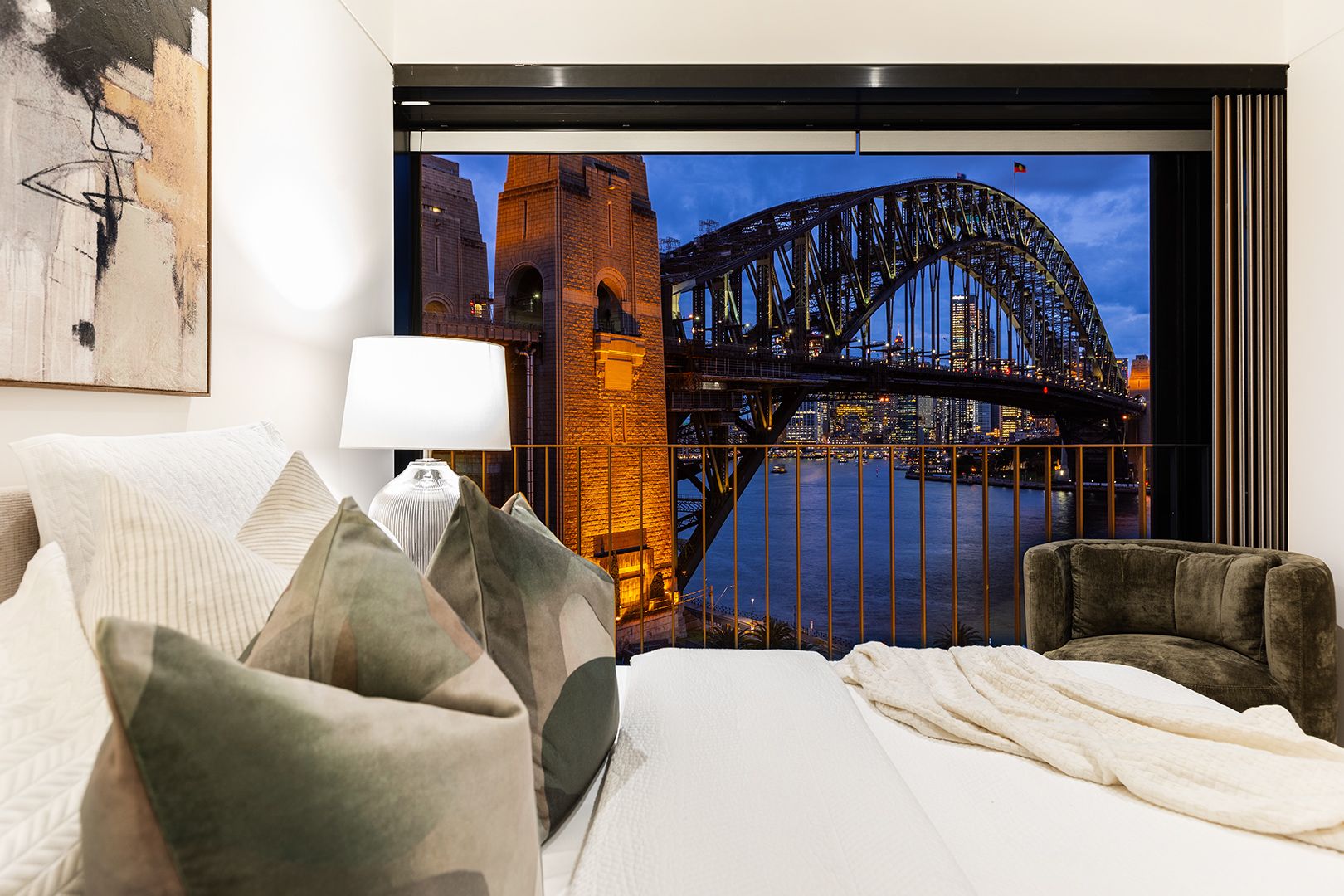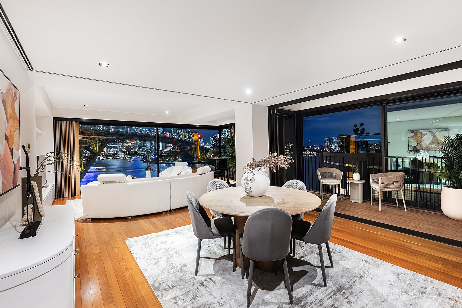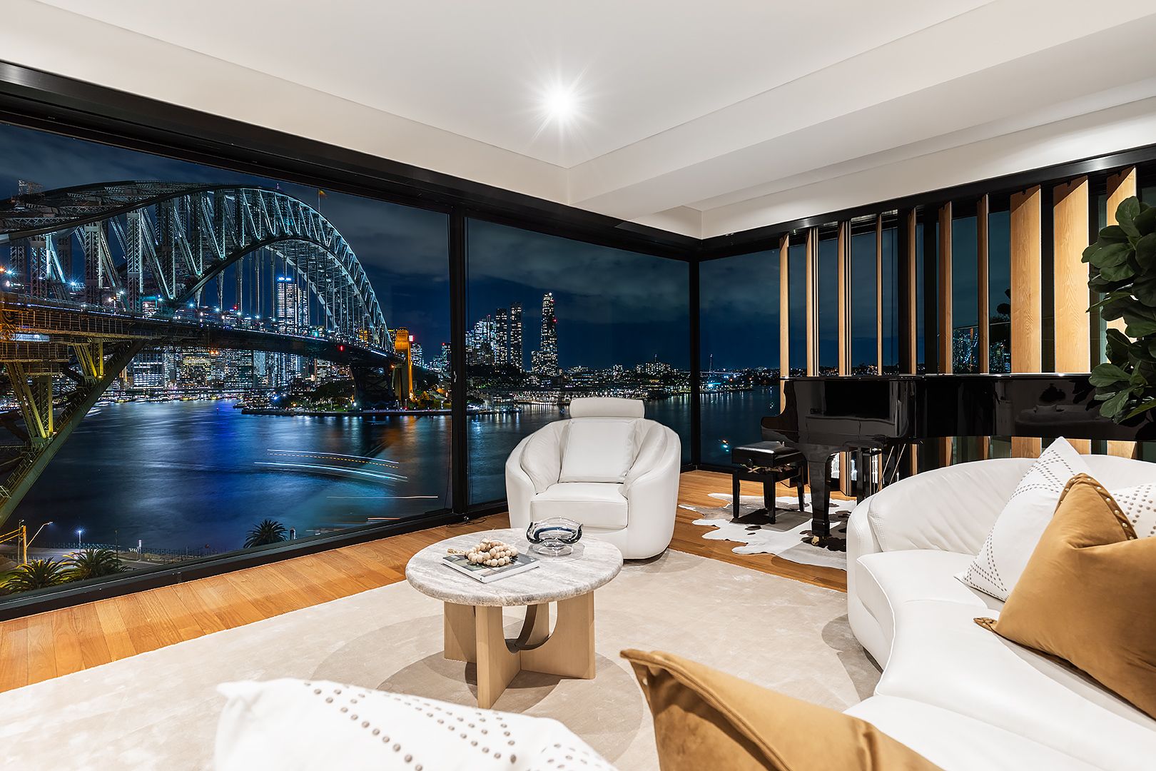 A unique opportunity to purchase a masterpiece of contemporary design with meticulous finish. Spectacular by day or night, this trophy home marks the epitome of luxurious and innovative living with an iconic never-to-be-built out backdrop of the Sydney Harbour Bridge, CBD and surrounding Harbour foreshore. Apartment 602 boasts an undeniably breathtaking sixth floor viewpoint and generous 177 SQM floorplan (202 SQM total on title) within The Point Residences, a complex highly recognised for its award winning design and point blank Harbour side location. Canter-levered construction enables floor to ceiling glass with impressive full height double-glazed sliding doors to three sides of its facade.