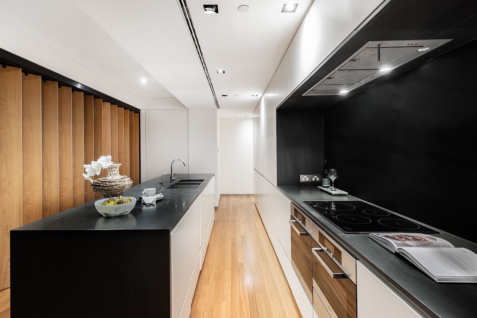 Combined with a C-Bus controlled blind and lighting system, complete flexibility exists to effortlessly transform your privacy oriented home into an entertainers pride and joy with the push of a button. This Andrew Cortese designed landmark won Best Residential Development from the Australian Institute of Architects (AIA) after its completion in 2010.