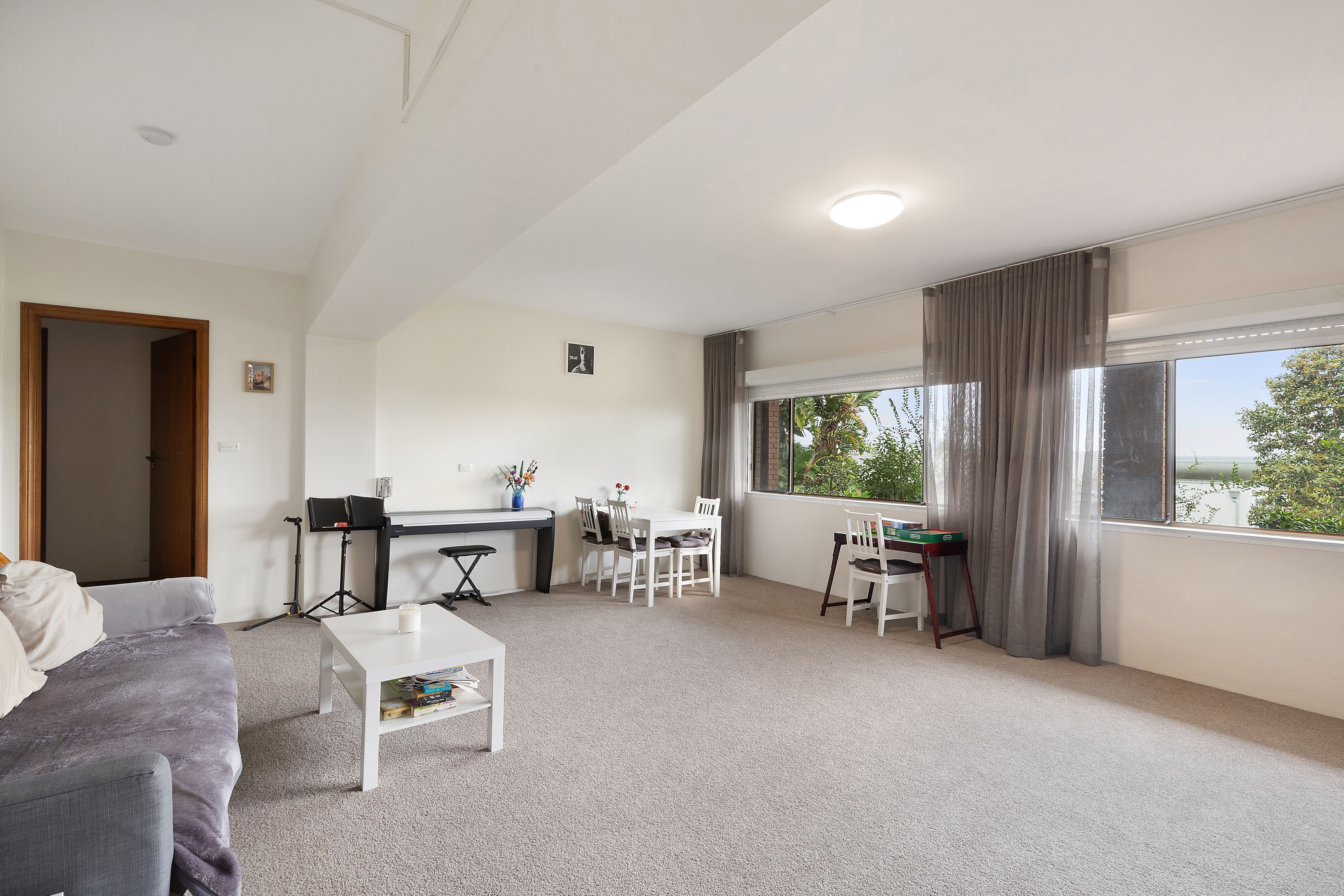 - Oversized downstairs living/dining, private leafy vista
