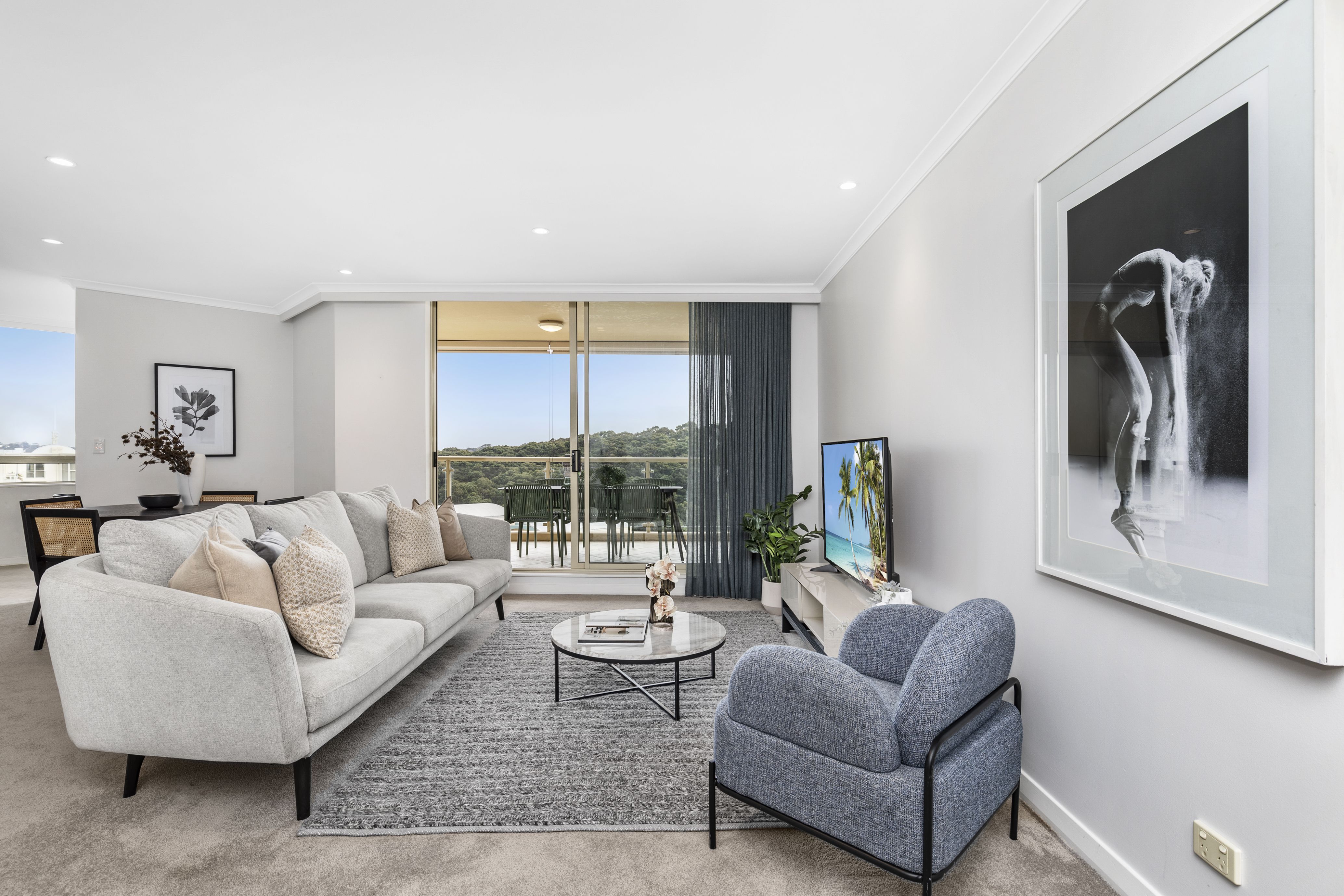 With a fresh neutral colour palette and plush carpet setting the tone for elegance, this inviting apartment is a haven of light-filled luxury. It embraces a functional floor plan that nicely separates the bedrooms from the living spaces, giving it a house-like ambience.