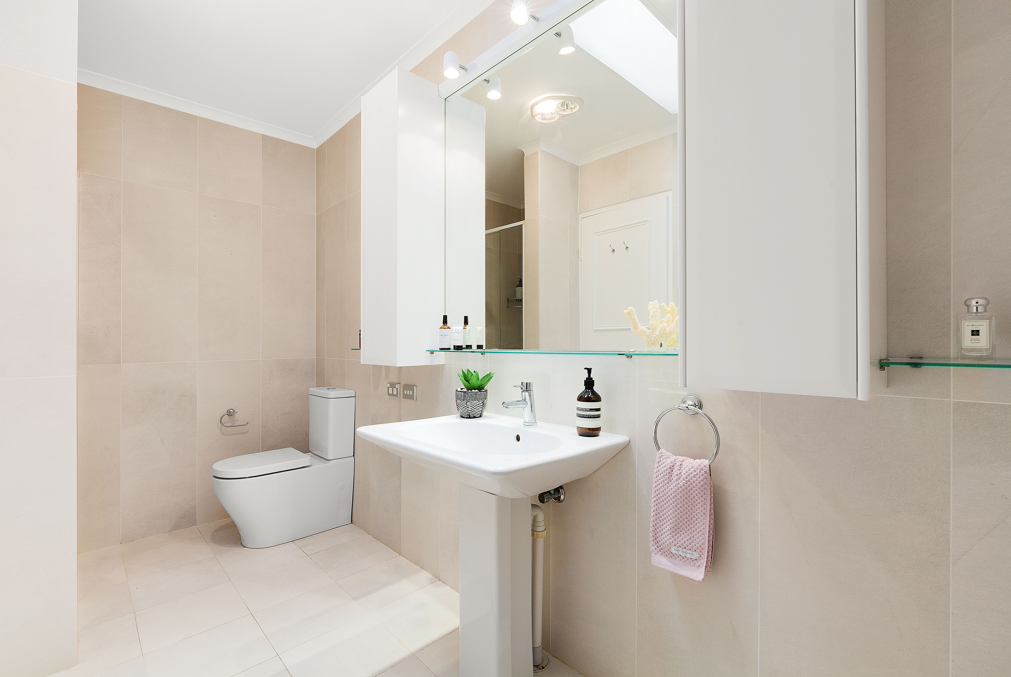 All three bedrooms enjoy leafy outlooks, built-in robes and ceiling fans, while the air-conditioned master suite includes a private terrace and ensuite. Gas heating and air conditioning in the lounge/dining area ensure year-round comfort. The layout also offers a generous internal laundry with direct terrace access, a guest powder room and internal access to a secure double lock-up garage with built-in shelving.